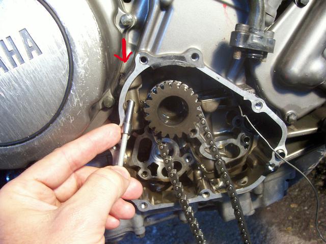 Vezlánc csere nem varázslat, csak sokat kell bontani hogy hozzáférj a szelepfedélhez. Idomok, hűtő, vizcsövek, termosztát, olajszivattyú. A vezérműtengelyt nem kell kivenni, mellette egy dróttal le lehet engedni az olajszivattyúhoz és azzal fel is lehet húzni az újat. A feszítősint egy csap tartja alul, amit egy blokkfélcsavar takar, azt ki kell venni, beletekerni a csapba és azzal ki lehet húzni, mint a képen.
