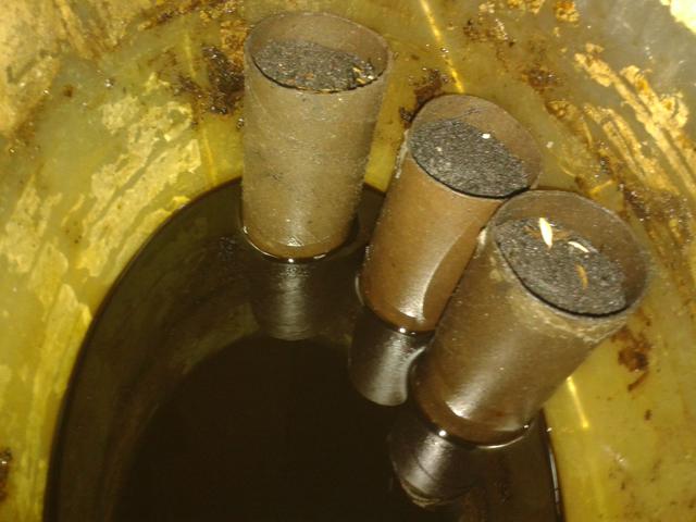 Az a gombostű fejnyi szenzor nem áll meg magától, azt szigetelő szalaggal hozzá erősítettem egy olyan hosszú hegesztő pálca darabhoz, amivel bevezettem a merülő hüvelybe, a parafa dugó meg stabilan tartja.