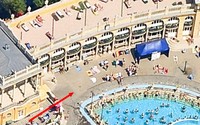 Oh, az egyszerű: a burkolat mintája adja el. Ilyen meg csak egy épületen van mind a mai napig. Itt: