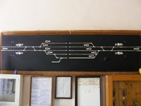 Nem biztosított, helyszíni állítású váltók, két őrhely, alak bejárati jelzők, egyik oldalán teljes sorompó és alak kijárati jelző, másik oldalán fény kijárati jelző.