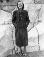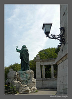 7557 - Budapest Gellért-szobor előtt. A 7998-s kép szerint, a szobor talapzatának közepén áll a hölgy a bemélyedésnél. (Színes képnél jobb szögben látható)