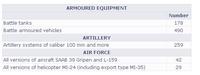 A Statisztikai évkönyvekben benne vannak ezek az adatok. Igaz legalább egy évvel lemaradva, és semmit nem ér, mert a hk-nál példa ha jól emlékszem még 2007-ben is vagy 130 T-72-esről írtak. Vagy a Szu-22-esek, MiG-21-esek is még évekkel a kivonásuk után is szerepeltek a statisztikában. Úgyhogy papíron elég jó hadseregünk volt, van.