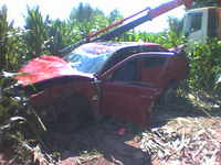 Ahogy nézem, ezt sem 2 forint lesz helyrehozni. Meg ugye kihagyta a korlátot, és a nagyobb fákat is. Attól még tény, komolyabb sérülés nélkül megúszta.