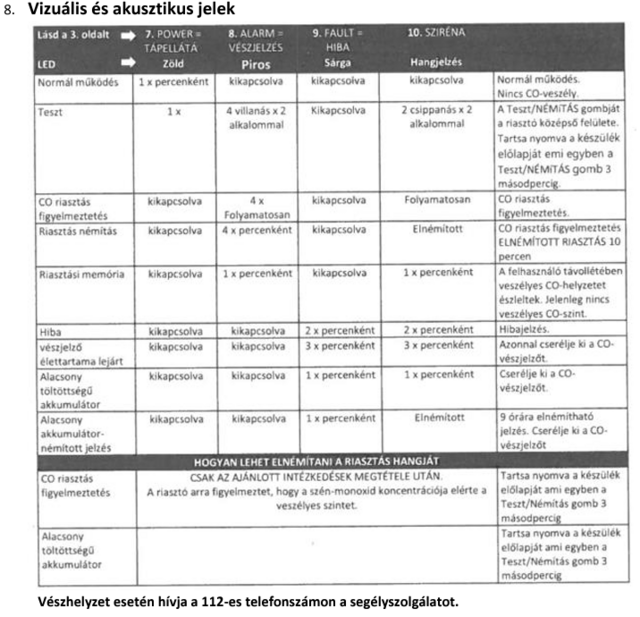 A táblázat szerint akkor piros villanás is van, erről semmi infónk nincs, ráadásul azt írta, kb. 2 percenként csippan. Ilyen sehol nincs a táblázatban. Én csak leírtam a tapasztalatomat.