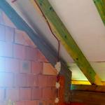 A szarufa vastagsága kb 9 cm, ebből kb 2 cm emelkedik ki a külső síkból, tehát kb 7 cm-nyi szarufa "tűnik el" a falban (a 10 cm hab (+ vakolat) mélységében), tehát ahogy JAMIE222 is írta, könnyen lehet, hogy a tégla (pontosabban a koszorú betonja) és a szarufa között lehet hézag, akár 3-5 cm is.