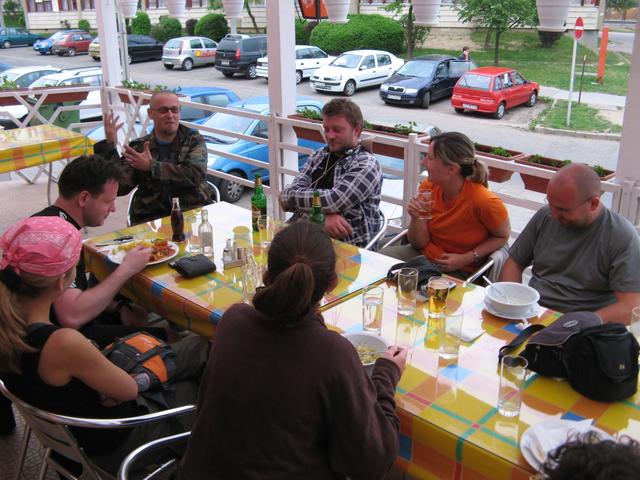 Tegnap Sátoraljaújhelyen túraversenyeztünk, majd libegőztünk. A szállásunk Bózsván a Kőbérc volt, ami az elmúlt 12 évben nem sokat változott. A mai ebéd Sárospatakon hamburger és sárgamuskotály fröccs.
