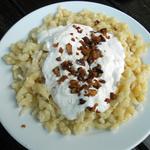 Mai kísérleti tárgyam a kefíres omlett. A tojást felvertem, tettem bele egy nagy löttyintésnyi kefírt, ismét felvertem, és rá a hagymára. Nem lesz olyan az állaga, mint magában, és hiba is lenne addig sütni, de érdekes lesz, mintha tettünk volna bele egy csomó sajtot.