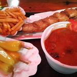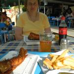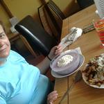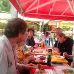 Dunakeszi, Napterasz pizzéria, ebéd. Előtte legyalogoltam a Lakótelepi piknik 17 km-ét, padler a 8 km-es távot. Jó túra volt, a három távon összesen 53 résztvevővel. Pizzáról nincs fotóm, azt túl hamar betermeltem, csak a gyümölcslevesről, a gyros tálról és az óriás palacsintáról.