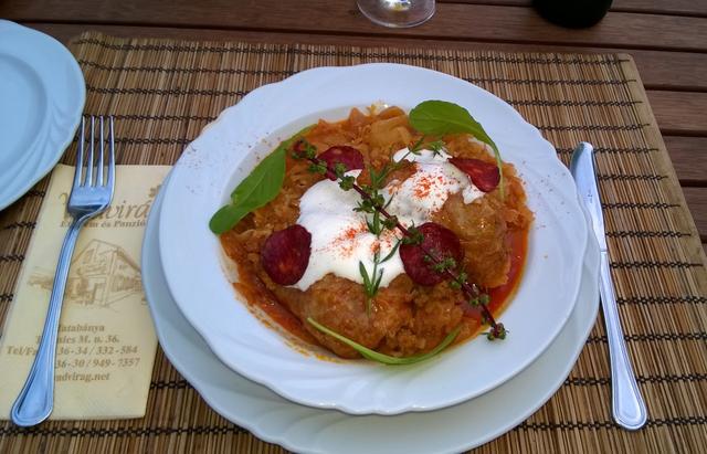 Bár nem turista kategória, de a maga nemében tökéletes volt: Hotel Gabriella étterme, Tapolca, Malom tóra néző kinti asztalokkal. Egyszerűket választottunk, de egytől-egyig szuper volt: gulyás, "tanyasi" sült csirkecomb (vajon futtatott, tökéletes ízű és állagú) petrezselymes krumplival, valami csajos saláta-étel, furcsa módon még a gyerekek rántott csirkemelle is sokkal jobb volt mint a "megszokott". Ajánlom.
