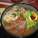 Kecskemét, Fekete Gólya vendéglő, bélszínsteak borsmártással tetszőleges körettel, én a rizst szeretem. (telefonos kép)