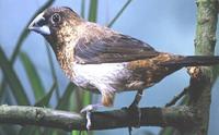 hegyesfarkú bronzpinty (Lonchura striata - Spitzschwanz-Bronzemännchen - White-backed Munia): ez a 12 cm nagyságú díszpintyféle Elő- és Hátsó-India, Ceylon, Indokína és Szumátra fás füves területein keresi fűmagvakból, rizsből és apró bogyókból álló táplálékát. Fotó: David Blank és Horst Bielfeld - http://www.horst-bielfeld.de/Az alábbi alfajokkal jegyzik: