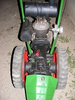a hajtott kerék természetesen hátra kerülne, én meg felülnék a váltó fölé, ahogy a képeken is csinálták... a gépet alapvetően földutakon meg a telken (15.000 nm) használnám, és elgondolkodnék egy erősebb motoron is.