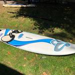 A 120l-es deszkám egy CrazyFly 247x61 méretekkel. Nem a legmodernebb, de nem is a legrégebbi konstrukció. Kezdünk szépen egymáshoz csiszolódni - én nem lépegetek rajta össze-vissza, akárhova, Ő pedig nem fúrja a vízbe az orrát, nem tör ki 0.5 sec alatt oldalra, nem ficereg, hanem siklik stabilan (néha azért még nagy szélben rakoncátlankodik egy kicsit). Képet csatolok, ha sikerül.