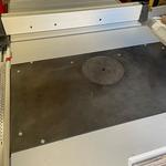 - 5mm-es acéllemezből lézervágattam az asztallapot és az abba tehető köralakú inzerteket. 7 inzertet készítettem különbözű méretű lyukakkal a közepén. A lézer tűrése 0,1 volt, én meg az asztallapban található lyuk átmérője - 0,2 átmérőt adtam meg a körinzerteknek. Tök jól fittelnek.