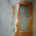 A sérülésből jól látszik, hogy ez "túlnyílt", vagyis valószínűleg egy huzat nem becsapta, hanem kicsapta a keretet, és a falkávába ütközve letörte az ablakszárnyat.