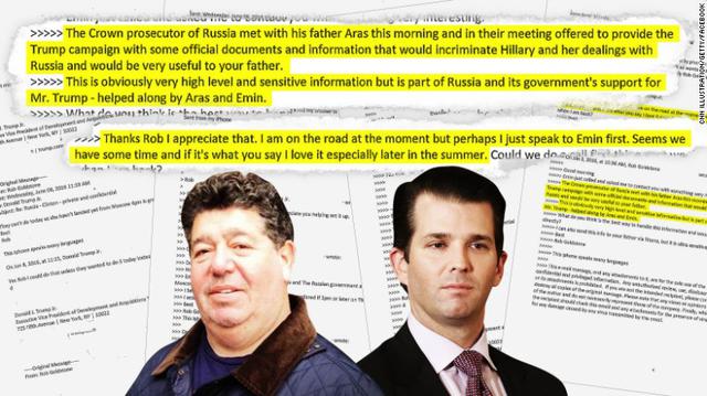 Trump fia meg ujjongott az orosz kormányzati infónak a levélben (mindegy hogy végül nem volt, de Trump Jnr. ujjongott neki amíg azt hitte van) es egyből meghívta a teljes kampanyvezetest a találkozójukra!