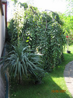 Nálam megint volt egy kis fazonigazitás (a gyerek miatt) megnyírtam alulról ismét... A tövében hozott egy szép sarjat, tavasszal leválasztom majd róla. A törzsét támasztani kell, elég gyenge gyökérzete van...mert elkezdett a járda felé görbülni még egy korábbi télen, mikor a levélüstök nagyon megtelt hóval.....