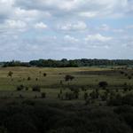 Átvágva falun egy festett plékrisztus után ismét kiértem a mezők, erdőfoltok közé és a Hoportyó felé vettem az irányt. A homokos útból később már csak keréknyomok lettek, aztán ezt is kezdte benőni a dzsindzsa. Úgy látszik, ezt az utat csak ritkán használhatják. Egy útelágazásnál a jelzések mindenáron az úttól balra akartak továbbvezetni, úgy harminc-negyven lépés távolságra, de ott aztán semmi út nem volt, így aztán maradtam az alig járt keréknyomokon. Pár kilométert ilyen és ehhez hasonló utakon kanyarogtam a szántók és erdősávok között, végül egy észak felé haladó, kijártabb útra akadtam. Ezen kapaszkodtam fel a Hoportyó széles hátára és értem el az Alföldi Kéktúra legmagasabb pontját kb. 180 méter magasságban. Nem tettem meg a kitérőt a 183,5 méter magas tetőre a Khrsz jelzéseken, de itt tartottam a legközelebbi pihenőm.