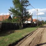 Kisebb útvonalváltozáshoz érkeztünk, a Vámospércs és Nyírmártonfalva közötti aszfaltúttól egy darabon másfelé kellett menni, mint amit az igazolófüzet térképe és a GPS-emre tavasszal feltöltött osm térkép jelzett. Itt tényleg figyelmesen navigáltunk, errefelé is sűrűn voltak a váltások az utak között, de itt nem volt hiba, simán elértük a Buzitapusztára vezető széles, homokos utat. Átvágtunk a falucskán, az utunk a buszfordulótól aszfaltburkolatot kapott, a falu utáni karámok végénél tértünk csak le róla. Homokos keréknyomokon értük el a szélesre taposott Álmosdi utat, erre rátérve már feltűntek előttünk Nyíracsád házai, amikor egy jobbkanyarral letérve erről az útról tettünk még egy kitérőt a faluszéli földek közé, aztán egy másik úton gyalogoltunk be a településre.