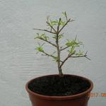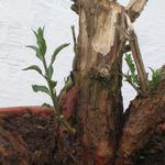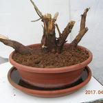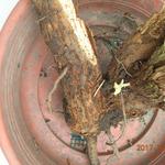 Az én gránátalma bonsai-jelöltjeim (2 telt virágú és 1 törpe) is úgy mutatták hogy kifagytak a télen. Nem hajtottak pedig napfényre tettem őket, bár az ágak nem száradtak el teljesen. Mielőtt végleg kidobtam volna őket, utolsó próbálkozásként egy-egy nagy méretű átlátszó fólia zacskót húztam mindegyikre felülről, a zacskó alját a cserép alá dugtam és a növényeket árnyékos helyre raktam bő két hétre. Ezzel az volt a célom hogy párás legyen a környezetük. A napokban néztem meg őket. A 2 telt virágú példányból lehet hogy az egyik tényleg megadja magát végleg, de még nem biztos. A másik így néz ki: