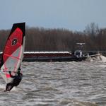 Cső pam-pi, téli vízszint van, de simán szörfözhető, kicsit bentebb kell tolni a cuccot. Tegnap is volt K. Zolika, meg T. Dezső. Annak ellenére, hogy visszavette a vasárnapi szelet 5.x vitorlák meg 100l ment. Délelőtt ma is fújt. A strand építkezés miatt lezárva, de a kerítés mellől lehet indulni.