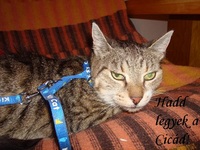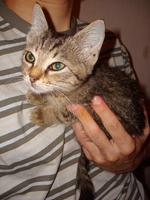 Tüneményes aprómancs keresi igaz gazdiját! Szirmos aug-ban született egy vidéki macskakolóniában, ahol megfázva és lesoványodva találtunk rá, hátulsó végtagjait már alig tudta használni. A gondoskodást igen gyorsan meghálálta, mára egészséges, dorombolós tünemény lett. Csodaszép sárgászöld szemei beszédesek, cirmos színében különleges a fejbúbján és a farok bojtján levő vörös színfoltja. Véleményét sokszor a gazdihoz beszélgetve fejezi ki. Bár már szalad, ugrál, és játszik a többiekkel, de az idegregeneráció még hosszabb időt igényel. Jól érzi magát a macskatársaival is, játékos és eleven, de a gazdi ölében hason alvós, nyakba bújós dorombozós tüneménnyé változik. Jelenleg ideiglenes gazdájánál várja az álomgazdit. Szobatiszta, egészséges, élősködői sincsenek, első kombinált oltását már megkapta. Keressük azt az embert, akit teljes szívéből egy életen át szerethet!