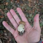 Vasárnapi "hullámzáró" kör a Börzsönyben: mivel a rendelkezésre álló idő limitált volt, nem kísérleteztem új helyekkel, hanem visszanéztem a múlt hét hétfőn és csütörtökön bejárt helyekre. Ez alapján úgy tűnik, hogy az új termőtestek képzése leállt, megtaláltam pár otthagyott darabot, de úgy tűnt, hogy egyelőre nem lesz folytatás. Ez nem jelenti azt, hogy nem lehetnek olyan eldugott helyek, ahol még lábon áll a múlt héten előbújt hullám, de újak nem jönnek elő ebben a hideg, szeles időben. A sötét trombita viszont megjelent olyan helyen, ahol hétfőn még biztos nem volt (legalábbis észlelhető méretekben).