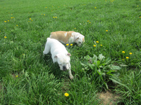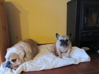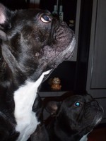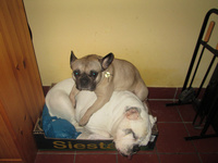 néha- néha jön egy pár kutyás, mult héten ki sem tudtam engedni ide a kiskertbe őket mert a szomszédban volt egy öreg dog, egy fiatalka és egy németjuhász aki annyira kötsög volt ,mint nálam Osztin , meglátták egymást aztán csak azt vettem észre nálam a németjuhász alig birtam elkapni Osztint, Hófehérkével ismerkedett meg Mendyt sem bántotta de mikor meglátta Osztint akkor igazán kihuzva magát lemerevedett az a balga bulldog is aztán behoztam , mert összeugrás lett volna a vége.