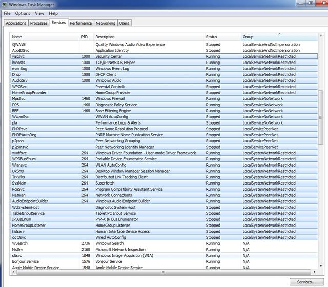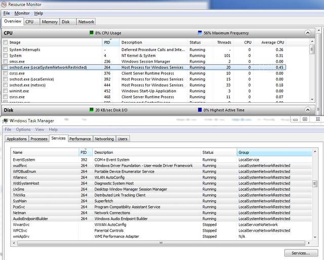 "task manager-rel és resource monitorral nem lehet megnézni, hogy mi fut az svchost.exe alatt. "
