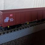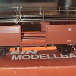 Klein Modellbahn 2 tengelyes pőrekocsi, nyitható végajtókkal. A modell újszerű, pályán nem volt, vitrinben is csak kis ideig. Saját dobozos modell. Átfestésre/MÁV-osításra vetttem de a projekt nem valósúlt meg, így a modell feleslegesé vált.