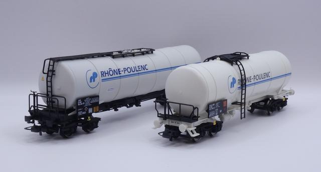 SNCF Rhône-Poulenc tartálykocsi készlet (Piko 95069 és Fleischmann 547205).