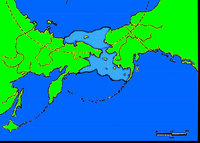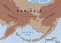 Hogyan lehetséges, hogy szinte egy időben, 12-11 ezer évvel ezelőtti leletek kerülnek elő Alaszkában és Dél-Amerikában? ...Az immár klasszikus nézet szerint az Ázsiát és Észak-Amerikát elválasztó, napjainkban vízzel borított sekély tengerszoros a földtörténet során igen gyakran szárazföldi híddá változott, és ekkor bizonyítottan átvándoroltak az ott élő állatok az egyik kontinensről a másikra. Az anatómiailag modern, értelmes ember, a Homo sapiens sapiens 200 ezer évvel ezelőtti afrikai kialakulása óta ilyen átvándorlásra akkor nyílott lehetőség, amikor a pleisztocén jégkorszak idején globális méretű eljegesedések alakultak ki, és emiatt a világtenger vízszintje 50-80 métert süllyedt ...Beringia – mint a kontinenseket összekapcsoló földterület – létét először Eric Hultén botanikus ismerte fel 1937-ben. A későbbi kutatások kiderítették, hogy a Bering-szorosnál a jégkorszakok idején nemcsak egy keskeny „híd”, hanem egy több mint kétezer kilométer széles szárazföldi kapcsolat jött létre, ami alaposan kiterjesztette Szibéria és Alaszka jelenlegi területeit is. A szibériai Léna folyótól a kanadai Mackenzie folyóig terjedő hatalmas Beringia igen változatos térszínén az utolsó eljegesedés idején ugyan alapvetően a füves mamutsztyepp-tundra uralkodott, de a hegyvidékek, a hatalmas zárt medencék, a folyóvölgyek, a gleccserek vidéke és a partszegélyek növény- és állatvilága jelentősen különbözött egymástól ...