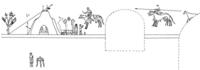 Vallási épület falfirkái közül származó tamga a szkíta Neapoliszból (ma: Szimferopol). Lóábrázolások vették körül.
