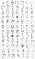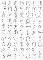 -van egy olyan további probléma is, ami magát a valószínűségszámítást kérdőjelezi meg, ti. hogy a jel készítője az egyszerűségre törekszik. Vagyis, igen nagy az esélye annak, hogy egy két vonalból álló X, vagy kereszt jel minden írásban előfordul, lévén, hogy annak a jelnek az elkészítése sokkal egyszerűbb, mint teszem azt, egy szabályos nyolcszögé. Vagyis a jelkészítő általában a legegyszerűbb jelek mellé társít jelentést, így a valószínűség számítás bukik, hiszen eleve kevesebb jel jön szóba, és megnő az azonos jelek használatának a valószínűsége. Ha rápillantasz a billentyűzetre, akkor láthatod, hogy az azon szereplő jelek zöme egy-két, max. három vonalból, és görbéből áll.