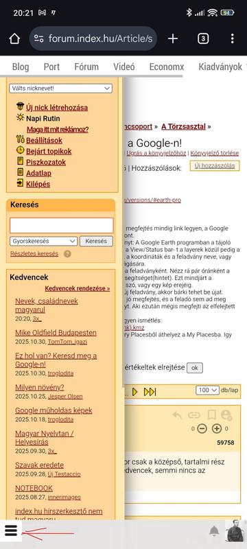 Hogyne lenne kedvencek meg keresés? Alul balra a három vonalon felnyílik: