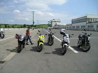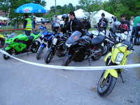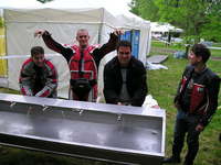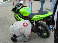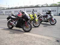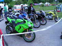 akkor én hogyan éltem meg az élményeket!? Reggel felkeltem, és azzal a ténnyel kellett szembe néznem, hogy csepereg az eső. :-( Aztán néztem az aszfaltot, és az száraz volt. Akkor mondom, oksi! Megyek! Elindultam, és mikor láttam, hogy az egyik irányban vizes az út akko rmegfordultam, nem akartam összekeni a motort. Azán mentem a másik irányba. (direkt nem írok irányokat, hátha olyan is olvassa a sorokat, akinek nem kellene. ;-)) Aztán elég jó tempóval feljutottam Pestre, persze közben cafatokra áztam, és nagyon elegem volt. Húúú de cefet módon elkapott az eső! Aztán miután a megbeszélt helyre oda értem, egyesítettük erőinket! ;-) Bás, Scr7, Bullmax, Gábor (BugiR1 öccse), s végül jómagam. Így ebben a felállásban irány Bullmaxhoz egy koffeinre, de persze, én megint különc voltam, és kakaót ittam! ;-))) Aztán muitán picit jobb idő lett, akkor kimentünk a pályára. Egyből oda értünk már regisztráltunk is, hogy mehessünk a pályán. ;-) Meg kitöltöttünk egy kressz tesztet, nem volt valami nagy szám, de sikerült hibázni. :-( Azért annak ellenére megkaptuk az ajándék csomagot. ;-) (tartalma: Az elmúlt húsz évről egy összefoglaló a H.ring történetében, építéstől mostanáig, köny illetve DVD formában; autós térkép, város térképpel együtt; ORFK-OBB-s poló; és egy toll) Aztán vártuk az időt, míg felmehetünk a pályára. Letettük a cuccunkat, és irány a H.ring. Húú, de gyengén muzsikáltam. Majré csíkom alig vékonyodott, nem mertem ledönteni a motort, és nem tudom miért, pedig szerintem sokkal jobban is tudtam vlna menni, csak nagyon féltem, és nem akartam eldobni a vasat. Inkább úgy voltam, hogy vastagabb majrécsík, mint törött motor. Ebben az egy körben míg fent voltam, sárc akkor szedte össze magát a pályán, aztán utána meg mikor már lejöttünk, akkor szedtek össze egy másik motort is, és azt meg utánfutóban hozták le. Ez is eléggé elszomorított, és meghagyta az élményt, hogy ne nagyon merjek megint felmenni. Aztán Gáborral mentünk beszélgettünk egy nagy fejessel az ORFK-nál. "Biztonságos Motorozásért" című beszélgetés volt. nagyon szívesen támogatnak minket, és folyamatos kapcsolattartáson van most a hangsúly! (Erről majd máskor.) Aztán miközben beszélgettünk Bullmax csinált pár képet, azt hiszem illesztek is be párat. Végül megjött Bás barátja is Laci is, aztán közben Garfonya meg bebukta a dolgokat. IJ! ;-) Ekkor Scr7 hazament, mert volt otthon egy kis dolga. :-( Végül a többiek, akik még ott maradtak felmentek a pályára még egy körre. Nagyon jól mentek a sárcok az elsőhöz képest, legalább is szerintem. Ekkor csináltam pár képet, Bás kollégától lehet kérni. Gondolom jó rossz képek lettek, mivel csak ugatom a fénykép készítést. :-( Mituán lejöttek a pályáról mentünk Etyekre, kis kerülővel. ;-) Itt persze megtörtént a lentebb említett kis malőr. :-( Akkor már 5-en, mert Bálint is csatlakozott, mentünk kajálni egyet. ;-) Ettünk jó kis Chilis babot, csak semmi köze nem volt a chilihez. :-( Ezután sétálgattunk egyet, és szemből jön egy ER-6n! Nagyon bátran totál szembe jön velünk, és megáll! "Hello, Szigiboy vagyok!" No, ekkor már jobban összeállt a csapat, és közöltük, hogy hol vannak a motorok, és megvárjuk itt, csak siessen. Letette a vasat, és mentünk nézelődni, beszélgetni, és persze csoport képet csinálni. (Nekem sajnos nem lett valami jó) Aztán vissza a motorokhoz, itt a motorokról még csináltam pár képet, de nem tudom milyen bátor dolog volt beteni azt a Hondát, de nem biztos, hogy az, szóval betteni ennyi Kawa közé!? Nagyon bátor, gondoltam magamban. ;-) Törött alkatrészek elpakolása után felültem a motorra, és irány Fehérvár, később Füred. ;-) Este 3/4-ed tíz felé haza is értem kb. 392 kilivel a seggemben. ;-) Aztán mivel csaptam egy kört még a városban, így úgy döntöttem, hogy irány az éjszaka! ;-) (Ezért nem jelentkeztem be este) El is mentem bulizni egyet, de ez már nem motoros téma! ;-)))