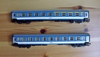Eladó Tillig TT középajtós személykocsi-szett, 2db. Halberstadt típusú 1-2.osztályú és 2.osztályú kerékpár szakaszos, MÁV Start, 6.korszakos vagon. Abban különbözik a gyári, Tillig 01625-ös szettől, hogy ez egyedi átalakítás a 2.osztályos halbi vagonból, még a szett megjelenése előttről. A kerékpár szállító pályaszáma megegyezik a gyárival (50 55 84-55 013-9), viszont az 1-2. osztályú attól eltér (50 55 21-55 011-8).