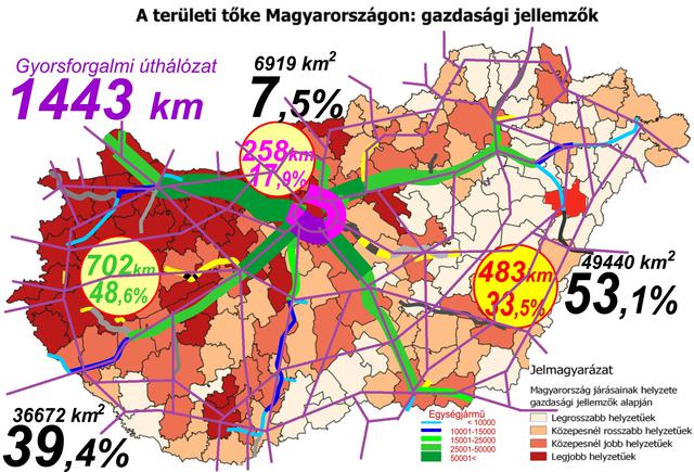 Én úgy látom, hogy "gazdagság" jobban korrelál a Bécstől/Pozsonytól?Münchentől való távolsággal, mint az autópályamegléttel. Szentgotthárd és Körmend autópálya nélkül is a gazdagabbak közé tartozik, Hajdúnánás és Mezőcsát meg az autópálya ellenére a szegények között van. Attól tartok, még a kormánypárti hatalmasságok szülőhelyei is nagyobb befolyással vannak ebben a kérdésben...