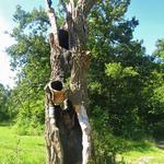 Visszatérve a Kápolnapuszta felé vezető útra a temetőnél és a házak romjainál a háborúk borzalmairól beszélgettünk, majd az eldugott, öreg fa törzsére szépen vissza-rögzítettük a kis fémtáblát a helyére, ahol 30+ éve nézegeti immár az erre járókat.