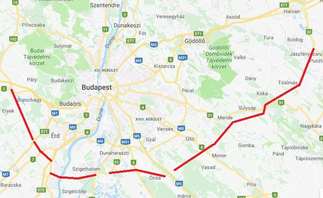 Nézd, a kettő (a második körgyűrű, ill. az M4-es) nem zárja ki egymást. Akár együtt is meg lehetne építeni, úgy, hogy mindkettő elkészülhessen. A második körgyűrűt egyébként "állam bácsi" emberei is megtervezték részben, úgy, hogy a keleti fele az M8-as gyorsforg.-út része lenne, csak ott a körgyűrű északkeleti vége valahová Füzesabony környékére jönne ki. <---(Ld.: az 1. és a 2. térképeket!) Ez esetben viszont Esztergomig ki kellene egészíteni az M8-ast egy Balatonaliga-Esztergom kiágazással (ennek hiányát lásd a 2. térképen!, de az 1. térkép terve is csak részben ad rá egy "közelítőleges" "megoldást" a Dég-Székesfehérvár-Komárom útszakasszal, amit zölddel jelöl).