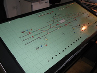 Kezelés: x és y irány, a gombok szinei irányonként különbözőek. Ha két összetartozót nyomsz felengedés után a kezdőpontnál megjelenik a szabadfény. Ha tolatásjelzőknél nyomod ott a tolatásjelzők lesznek fehérek a vágányútban. Ha két nem összetartozó színt nyomsz csak a vágányút áll be. Természetesen értelmes vágányútnál.