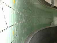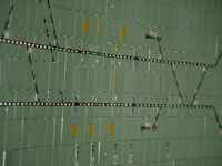 A heveder mellett vörös-fehér sávozás mind a két sínszál talpán és gerincén, kívül-belül egyaránt.