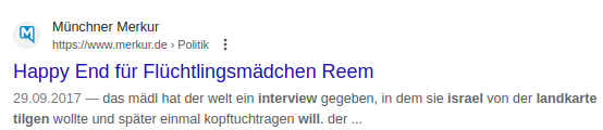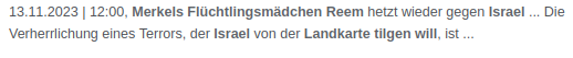 Az a hir is meg van, hogy a lany -aki mar nemet allampolgarsagot is megkapta- most Israel ellen uszit, es az terrornak tapsol ami Israel allamot eltüntetne a terkepröl.