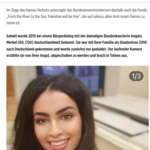 Merkelnek hosszu eveken at az egyik CDU-s bizalmas Rehberg az egyik követelö itt, szerinte a lanykabol egy antiszemita es terroristakaknak tapsolo fiatal nö lett, es szerinte a fiatal arab-iszlam vallasu/palesztin nö a nemet allampolgarsagot-behonositast maganak ellopakodta, igy a (nemet allamnak) a behonositasi-hibat korrigalni szükseges, Pass es allampolgarsag elvonasa szükseges.