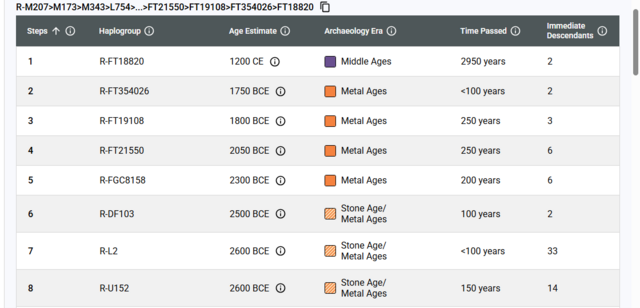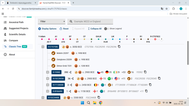 ha a google keresőbe beírod ezt a R1b1a1b1b3a1 haplocsoportot amit megadtál, azt a haplocsoportot adja meg aminek a képét beraktam. ha a R-S17864 haplocsoportot beírtam ugyanaz lett az eredmény. Amikor az FTDNA cég Discover keresőjét használtam, beírva a R-S17864, haplocsoportot akkor a képen látható eredményt adta ki, az R-CTS7822-öt.