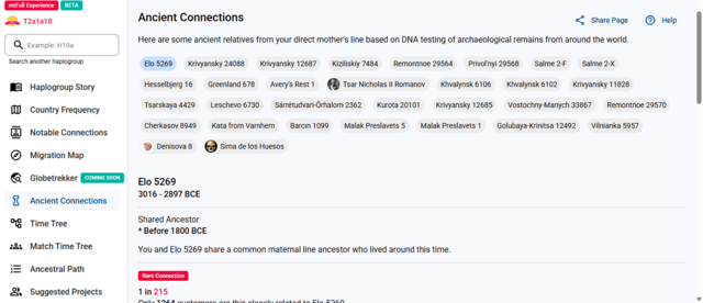 Ma kaptam új archaikus mintákat az FTDNA cégtől, egy új Lazaridis tanulmányból oroszországi mintákkal. Szóval az egyik anyai haplocsoportom a T2a1a a Jamnaja kultúrához köthető.