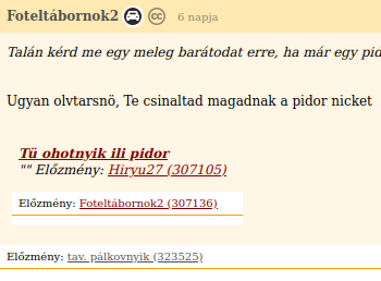 Te magad is beidezted ugye, igy egy teljesen fölösleges kerdes, mint ahogy az is, hogy Te sajat magadnak csinaltad a pidor nickedet meg a többi nönemü nickedet is, ilyen nicknevek valasztasra Teged mint usert senki sem kenyszeritett, mint ahogy arra sem kenyszeritett senki sem, hogy elhazudd azt amit magad irtal a tartalmadban ami most mint egy un technikai elözmeny jelenik >