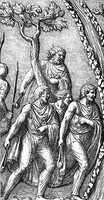 „Izsák pedig negyven esztendős vala, a mikor feleségűl vette Rebekát a Siriából való Bethuélnek leányát, Mésopotámiából, a Siriából való Lábánnak húgát. És könyörge Izsák az Úrnak az ő feleségéért, mivelhogy magtalan vala, és az Úr meghallgatá őt: és teherbe esék Rebeka, az ő felesége… És betelének az ő szülésének napjai, és ímé kettősök (ikrek) valának az ő méhében. És kijöve az első; vereses vala, mindenestől szőrös, mint egy lazsnak (durva, vastag posztó); azért nevezék nevét Ézsaúnak. Azután kijöve az ő atyjafia, kezével Ézsaú sarkába fogódzva; azért nevezék nevét Jákóbnak. Izsák pedig hatvan esztendős vala, a mikor ezek születének.” (1 Móz 25, 20-21, 24-26)