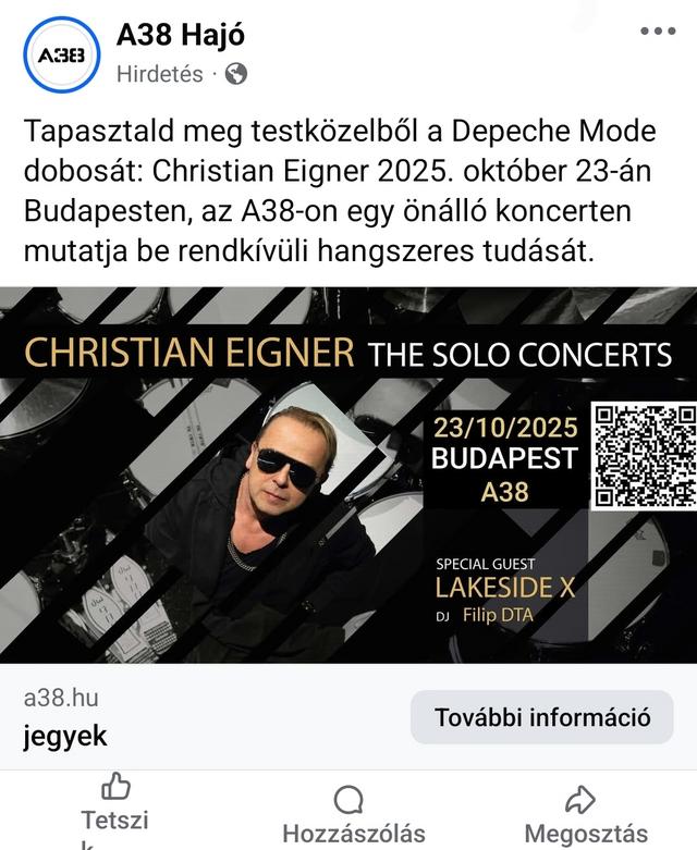 "Tapasztald meg testközelből a Depeche Mode dobosát: Christian Eigner 2025. október 23-án Budapesten, az A38-on egy önálló koncerten mutatja be rendkívüli hangszeres tudását."