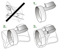 Alkalmazása: mind az ábrán is látható nem kell kézzel a zsákba belenyúlni, hanem a mellékelt komposztálható speciális anyagból és méretből készült zsákot kell az eszközre helyezni.